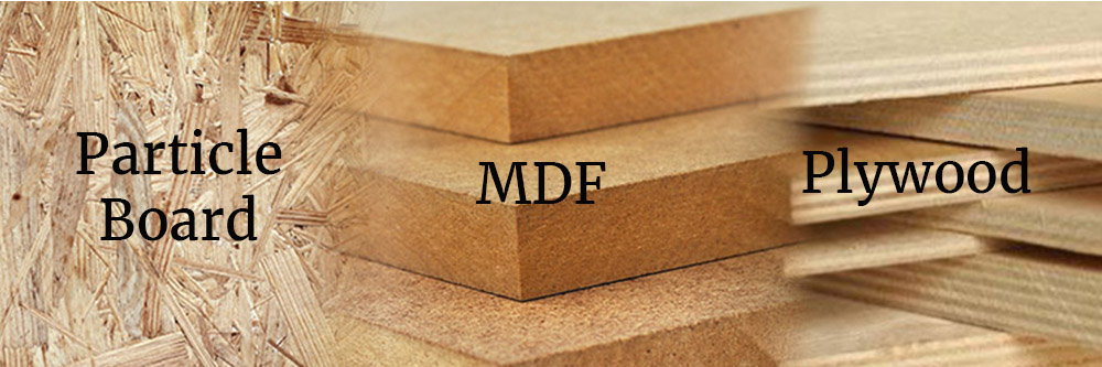 Particle Board: Particle board is made from compressed chips of wood, and you will likely recognize it as just that! Particle board is used often as shelving in cabinets and is often the base beneath laminated furniture. It will not have a grain but you will see the small pieces of wood making up the panel.