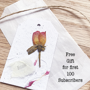 To celebrate the beginning of my email community, I'm sending the next 100 subscribers a pressed flower grown and dried here on the farm as part of a mini gift tag kit...the pressed flower, a handmade paper tag, an herbarium-style label and a length of natural twine. Experience for yourself how beautiful the colors and textures of natural materials can be.
